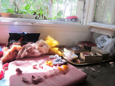 I like to make color experiments when I'm making a gift for a special occasion or a special person. The couple in blue in the box above is a wedding gift for Asaf & Dafna, I wish you both a bright and happy marriage! The couple in green below is for sweet Noa's first birthday. The tree outside my window seems to enjoy the summer. I find it very hard to understand, but I'm happy for him non the less.